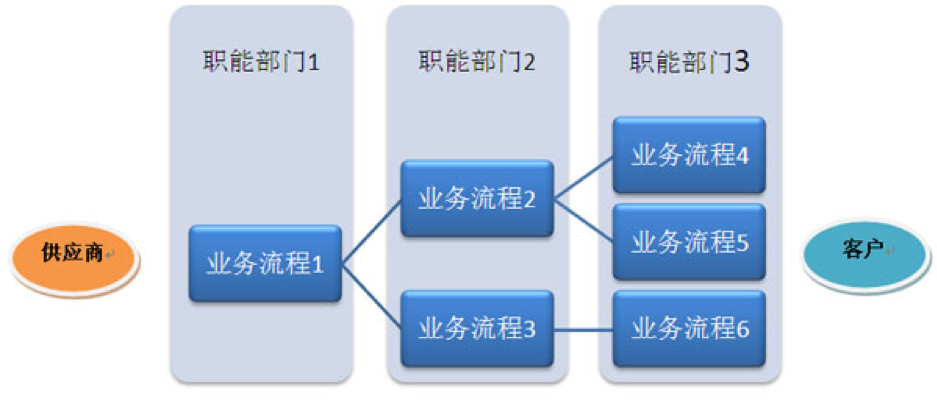 对业务流程(Business Process) 的重视始于80 年代中后期。伴随着信息技术日新月异的发展和外部客户需求与竞争的变化,大型跨国企业面临着来自一些反应敏捷,能迅速满足客户需求的中小企业的巨大挑战,甚至是致命威胁。这些原有资源和整体优势无法发挥,并且饱受股东和公众批评为“恐龙”的大型企业纷纷思考解决应对的办法,最后几乎一致将着眼点放在了业务流程上面。这不仅仅是因为业务流程(Business Process) 与客户对组织的理解是一致的,而且业务流程能力是组织实现其战略的关键支撑点。因此,这些大型企业认为组织领导应该在部门管理的垂直视角上把业务流程管理的横向视角补充进来, 二者是互补的关系而并非替代的关系。 这样,企业通过流程管理来扁平化组织结构,通过提升关键业务流程能力来快速响应市场变化,同时仍然能够发挥出比中小型企业更大的资源优势来。