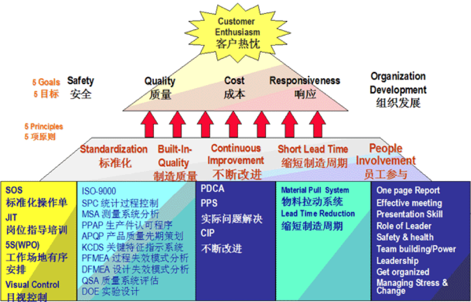 丰田模式(TPS)已经被世界公认为制造业最成功的模式,西方学者将其理念、思想、技术体系概括为精益生产(Lean manufacturing)。